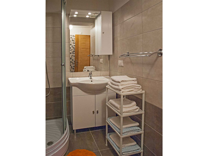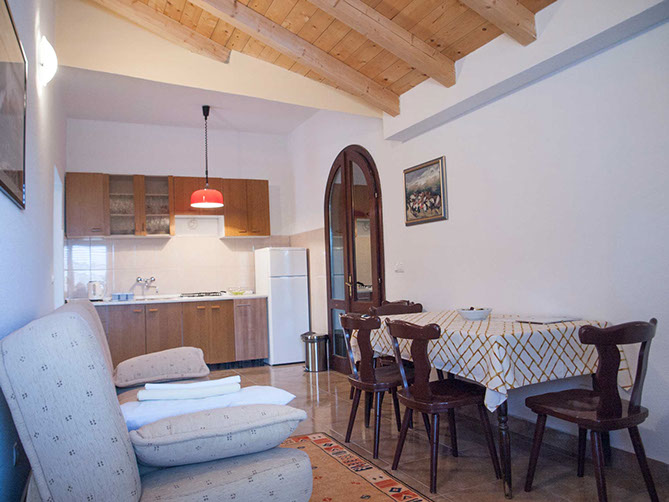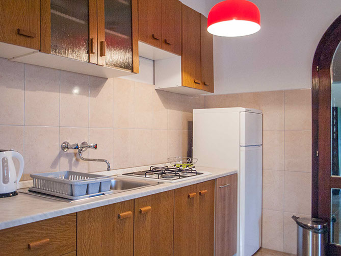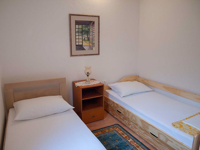 The apartment Gardenia disposes with one bedroom king bed, while the second bedroom has two single beds.