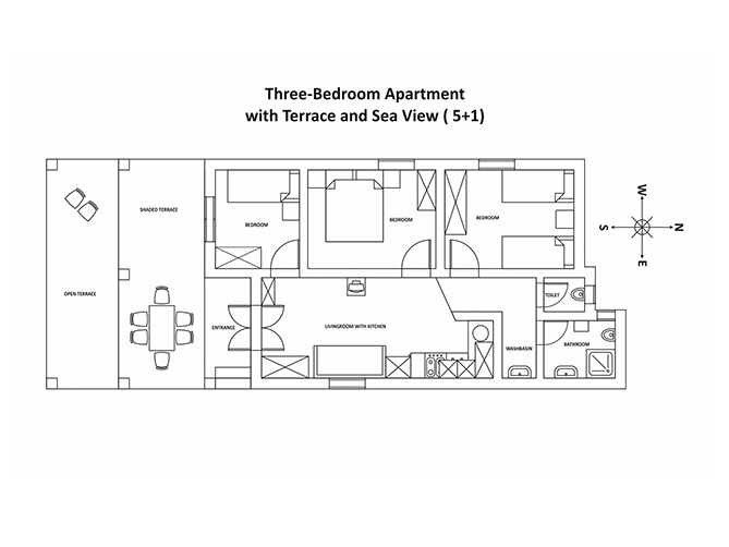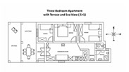 Apartment Iris is located on the west side of Clematis Ville, and is equipped with its own terrace, three bedrooms, kitchen, dining room and bathroom.