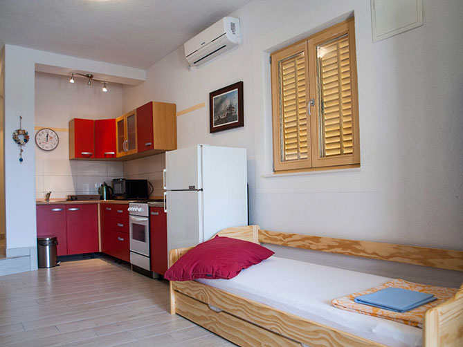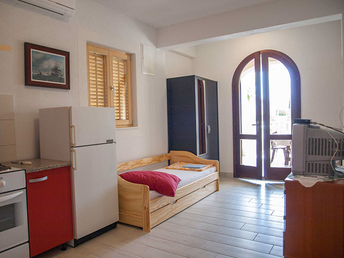 The one bedroom apartments Iris is a single bed, in second is double bed, while third bedroom has two single beds.