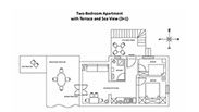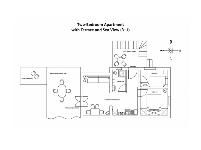 Its large terrace is shared with apartment Camelia, so these two apartments may be ideal for two families with children, friends or a larger group of guests.